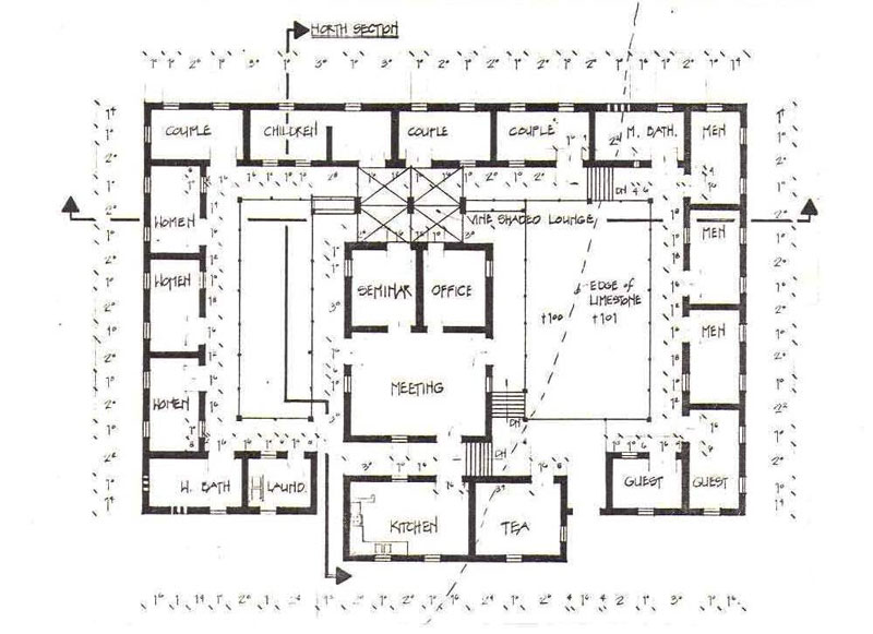 Optimal cross ventilation, shaded walkways, are employed in the Arab tradition. Limestone walls were utilized with cast concrete roofs reinforced with palm fibers.