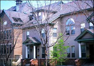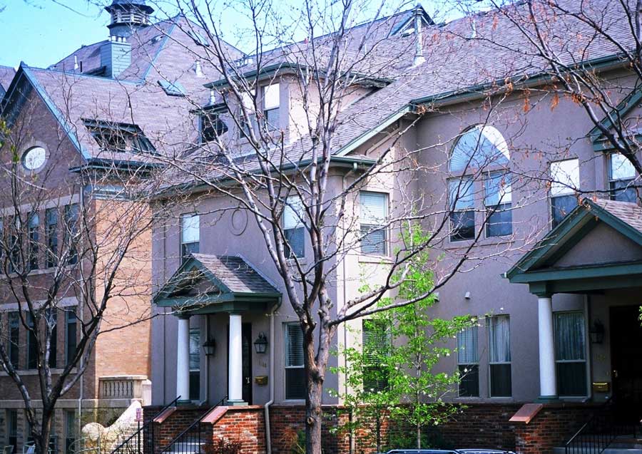 Directly adjacent to the historic Stevens School, the townhomes are designed to fit in with the neoclassical lines of the school.
